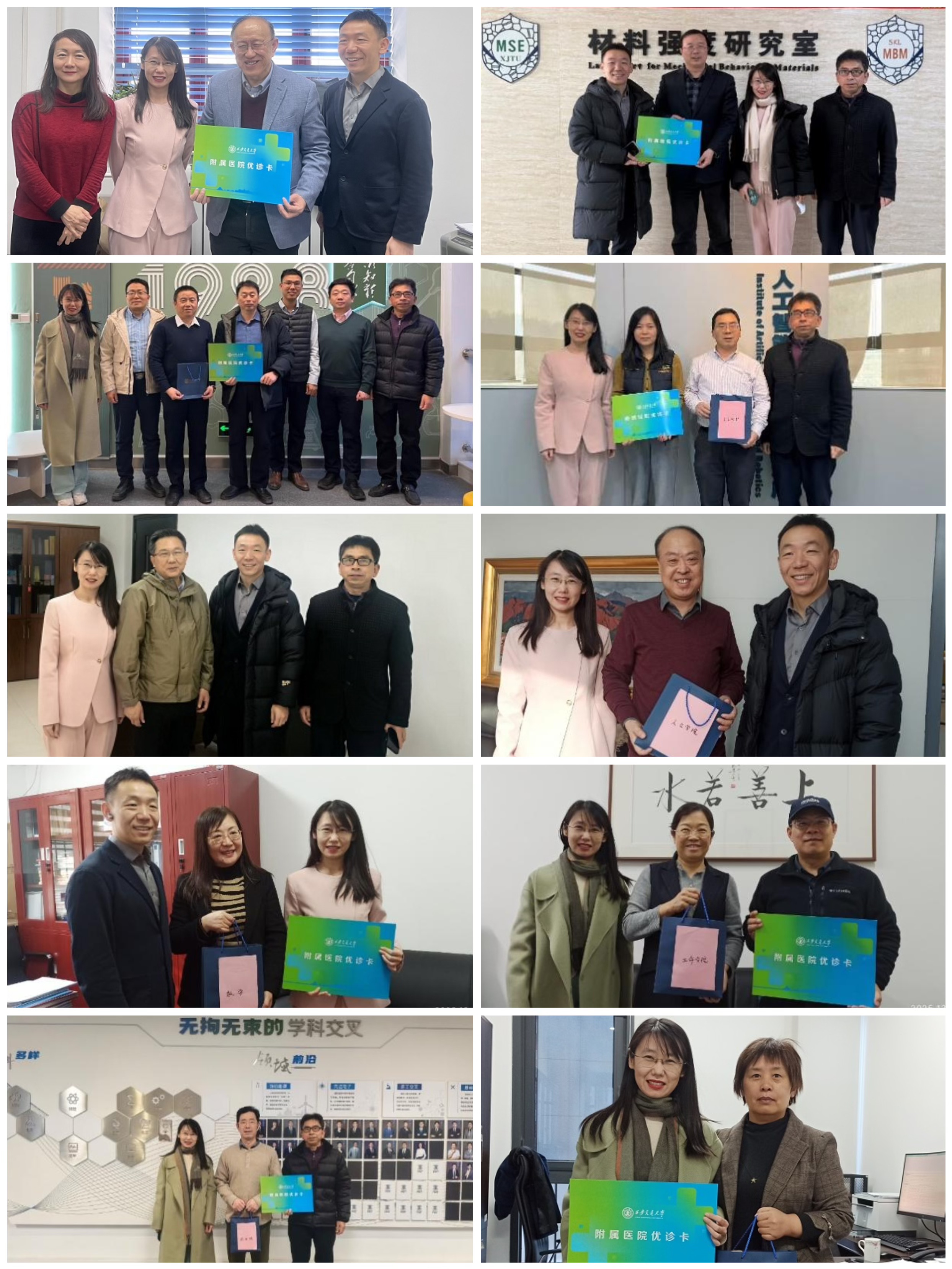首批已为包括院士和中青年专家学者在内的近300个家庭制作了附属医院优诊卡,附属医院为此优化就诊流程。近日,由沈超副主任、李晔副主任带队,高层次人才办公室主动到各学院(部)上门送卡,将学校对专家学者的温暖送到“家”。