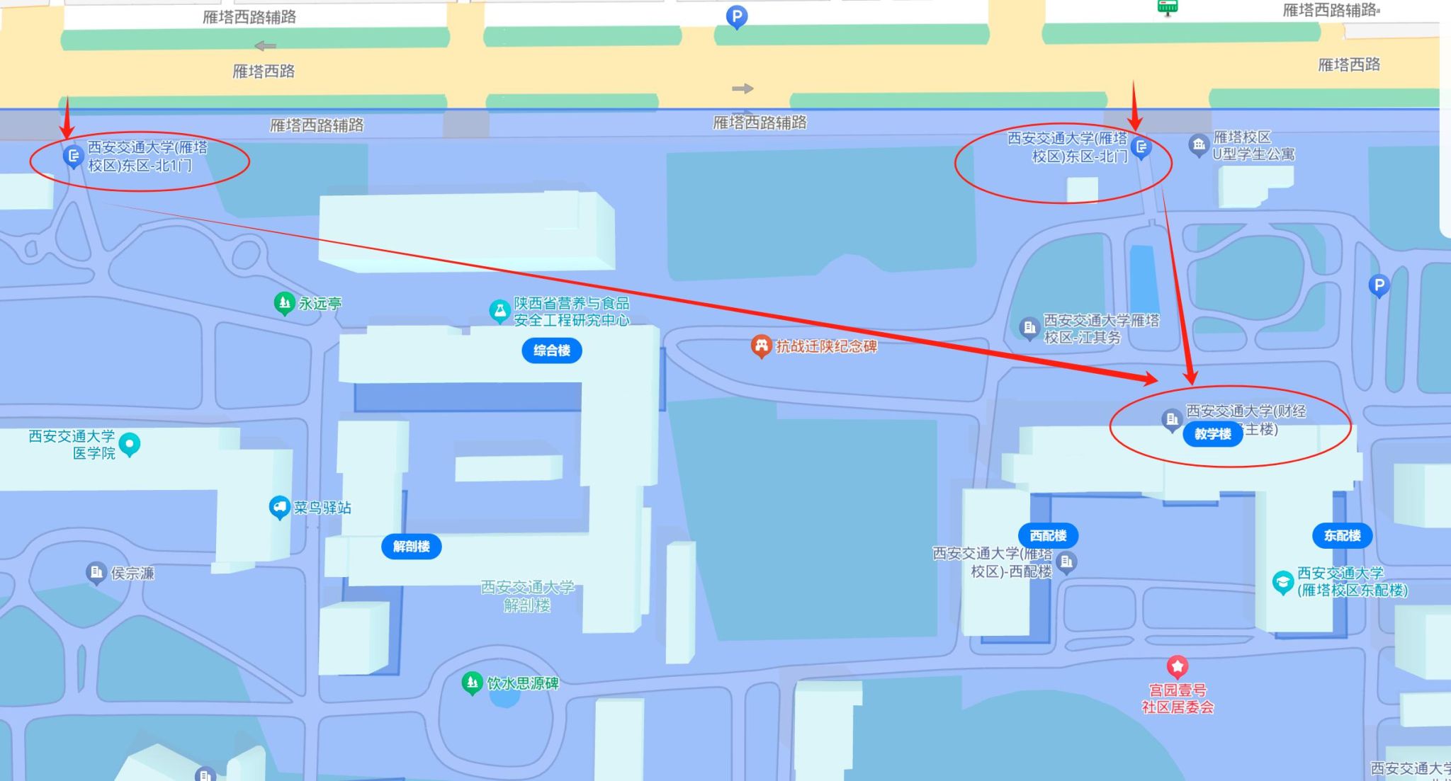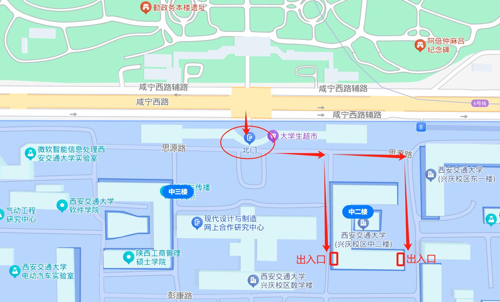 1.外校教师凭本人身份证从西安交通大学兴庆校区北门(咸宁西路)、雁塔校区北门或北1门(雁塔西路)进出学校。